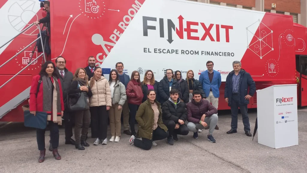 La Cámara de Comercio de España, en y Fundación MAPFRE, con la colaboración de Cámara de Comercio de Cáceres y cofinanciación de la Unión Europea, han puesto en marcha la ruta FINEXIT, un innovador escape room’ financiero itinerante que recorre centros de Formación Profesional de 41 ciudades para fomentar la formación financiera entre el alumnado.