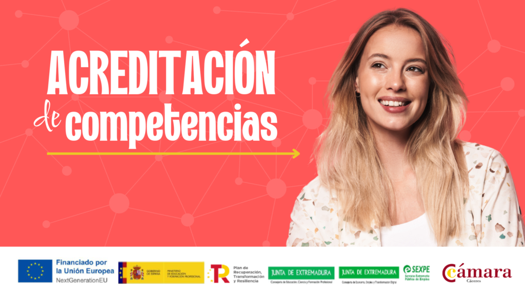 La Cámara de Comercio de Cáceres pone en marcha el Programa de Acreditación de Competencias Profesionales, una iniciativa de la consejería de Economía, Empleo y Transformación Digital de la Junta de Extremadura, la consejería de Educación, Ciencia y Formación Profesional y el Servicio Extremeño Público de Empleo (SEXPE) destinada a reconocer oficialmente los conocimientos y habilidades adquiridos a través de la experiencia laboral o de la formación no formal, facilitando así la obtención total o parcial de un Certificado de Profesionalidad.